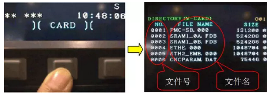 (3)查看存储卡上的新文件。按功能键PROGRAM→扩展键【►】→【CARD】, 看到DIRECTORY(M-CARD)页面,已生成了PMC1_PRM.000文件,输出成功。